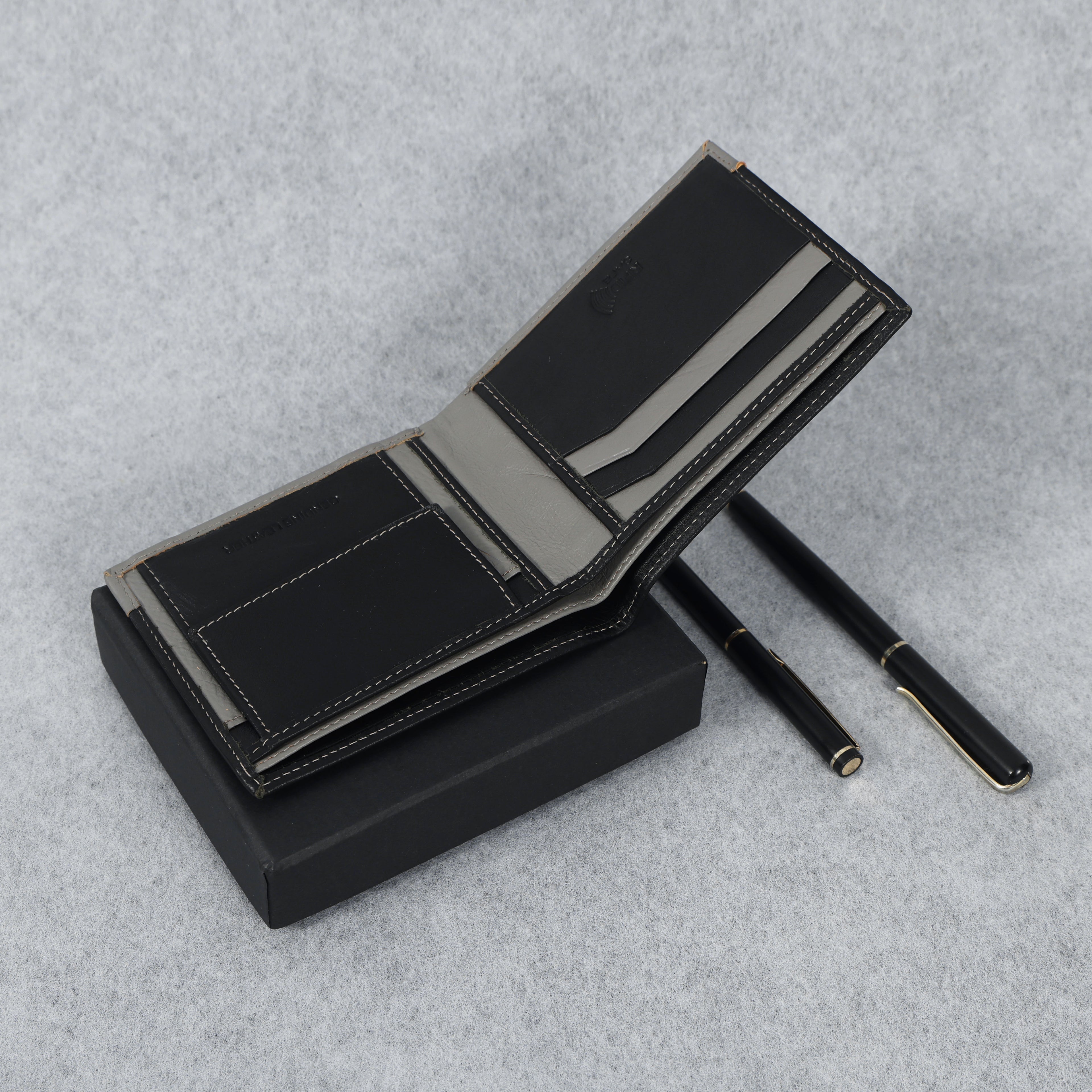 Bifold Leather Wallet For Men With RFID, 2 inner Cash Compartments, 3 Credit Card Slots with Coin pocket, 12.5x10.x3 cm (Black)