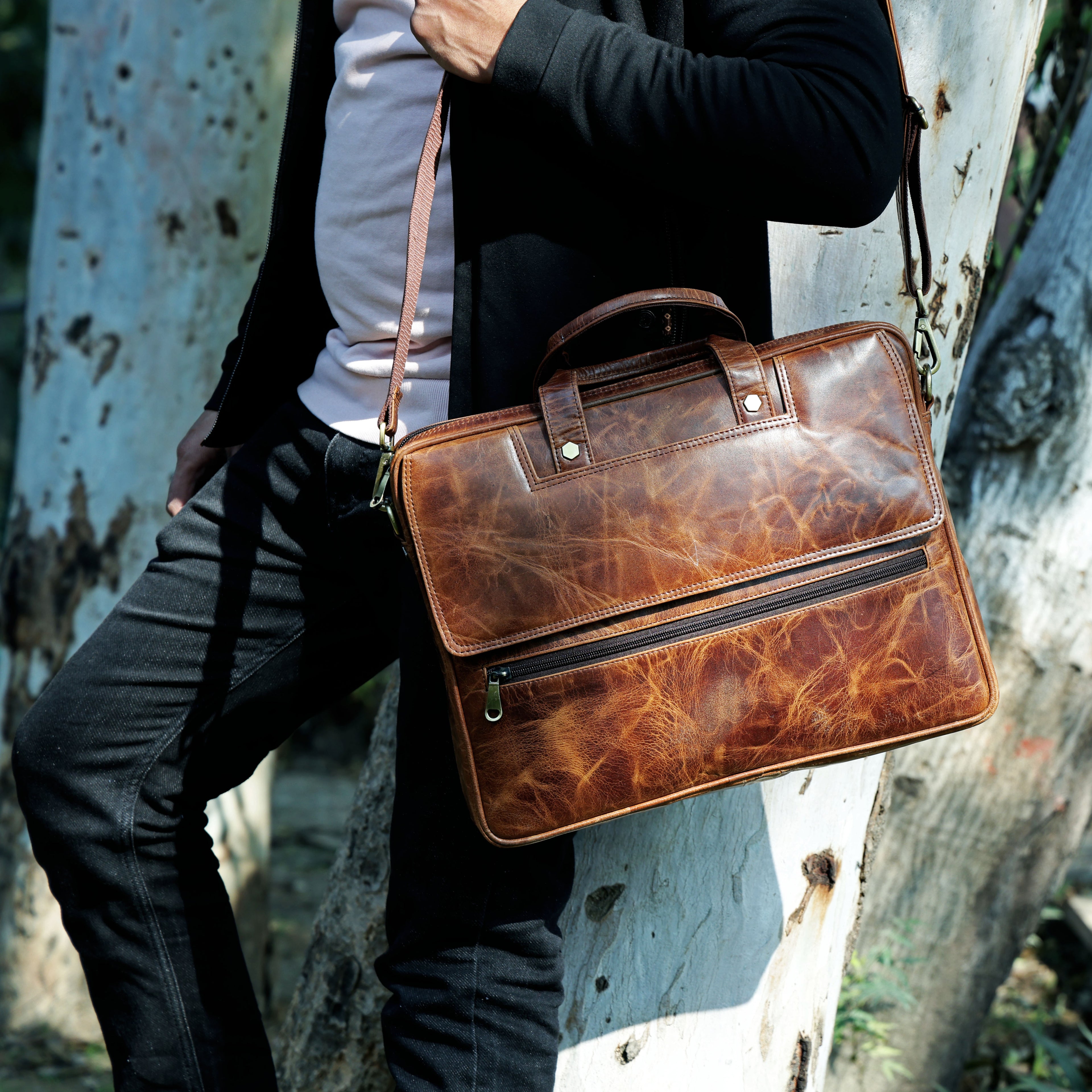 "Experience luxury craftsmanship with our handcrafted leather laptop bags — where sophistication...