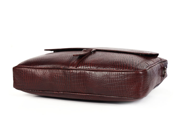 Crocodile Embossed leather bag for men, 5 Zipper Pockets with Spacious Compartments.,12 x 16 x 4 inches.