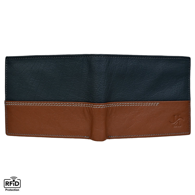 Bifold Leather Wallet For Men With RFID, 2 inner Cash Compartments, 3 Credit Card Slots with Coin pocket, 12.5x10.x3 cm (Blue)
